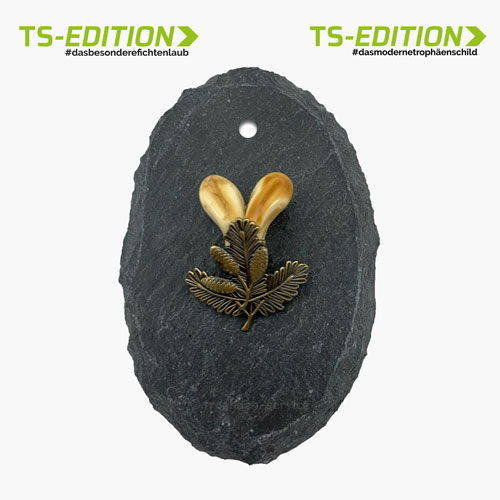 Das Schieferschild sowie die Abdeckungen #daskleineeichenlaub oder #dasbesonderefichtenlaub sind aus unserer TS‑EDITION und nur bei uns bzw. in unserem Online‑Shop erhältlich.